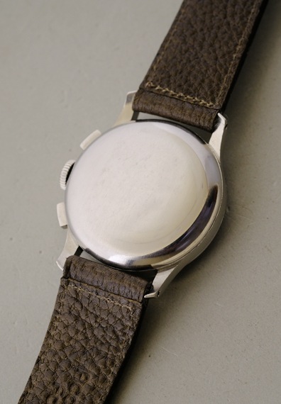 名機バルジュー23搭載機らしく、ケースサイズ32ミリとく小振りなサイズ感も魅力のひとつで、クラシカルな角型プッシャーと相まって、凝縮感をより一層際立たせています。