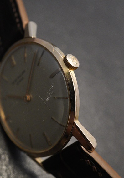 厚みをおさえたすっきりとしたケースには目立った傷や汚れは見受けられません。ダイヤルもクリーニング等された形跡も少なく、立体的なエナメル仕上げも健在です。