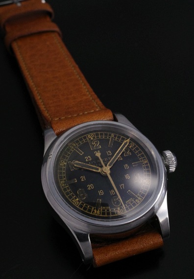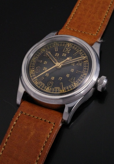 ダイヤルは若干の経年変化が確認できますが、マイナスの印象は一切なく、むしろ下地出しのゴールドレターと夜光針&インデックスの魅力的なエイジングが、とても良い雰囲気となっています。