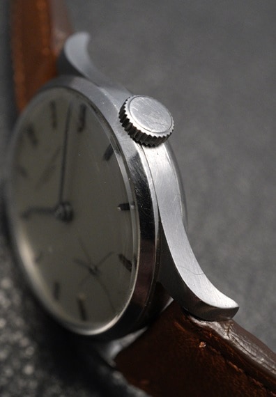 今回の個体は、その中でも珍しいスモールセコンド仕様のCal.VZSSを搭載します。スモールセコンドの方が希少とされ、加えてレアなSSケースともなると出会いの機会は格段と低くなるでしょう。センターセコンドのVZSSCと比べて出車などが無い分、ムーブメントの大部分を覆うプレートがより引き立つ意匠が魅力的です。やや経年変化は見受けられますが、細部までの美しい仕上げは健在で、Cal.VZSS本来の魅力を余すことなくお楽しみいただける貴重な一本です。