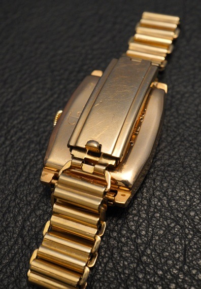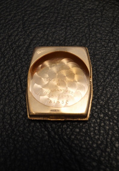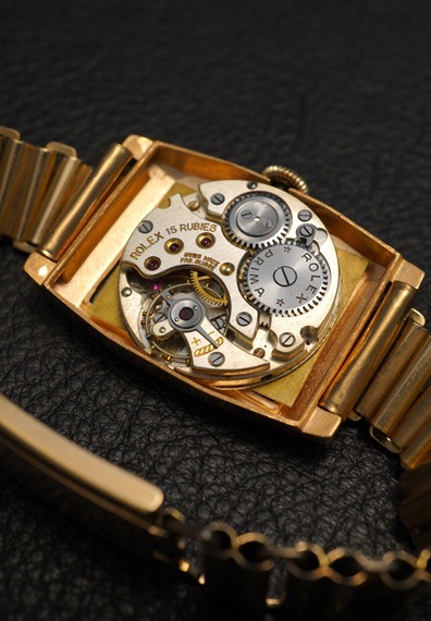 全体的に経年変化が確認できますが、ツートンのコントラストもしっかりしており、エイジングも含めて良い雰囲気ではないでしょうか。製造年代を考慮すれば、ご納得いただける状態かと思われます。また、ケースに関しては再メッキ加工が施されています。色味等に違和感は無く、時計全体の雰囲気を損なうほどではありません。オレンジゴールドのようなカラーが絶妙にマッチします。ヴィンテージロレックスの角型言えばプリンスが有名ですが、こうしたどこかデコラティブでありながら、しっかりと均整のとれたデザインの角型モデルも良いものです。”一点もの”というアンティーク本来の魅力を随所に感じさせるロレックス、クリスクロスダイヤル。ぜひこの機会にご検討ください。