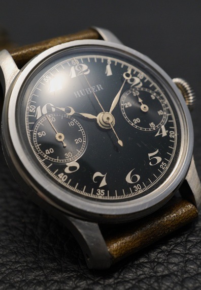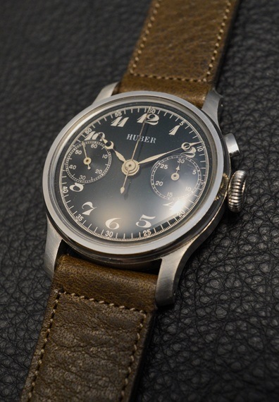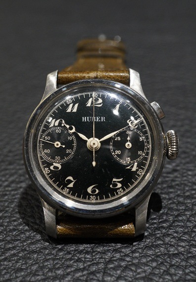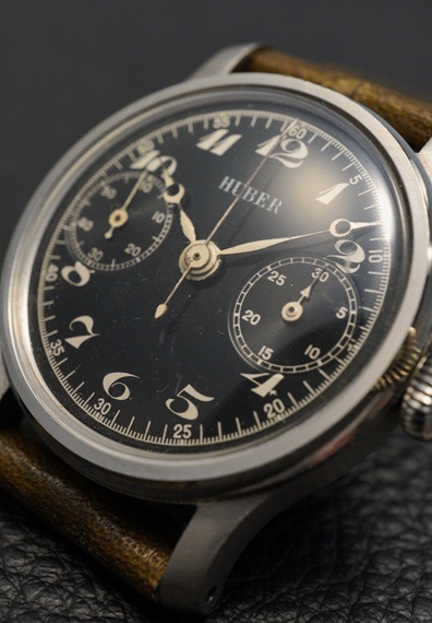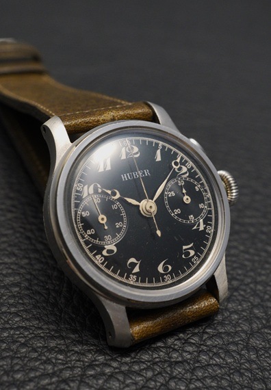 1940年代製のドイツの老舗高級時計宝飾店HUBER(フーバー)銘のクロノグラフ、ランデロン13搭載機が入荷しました。