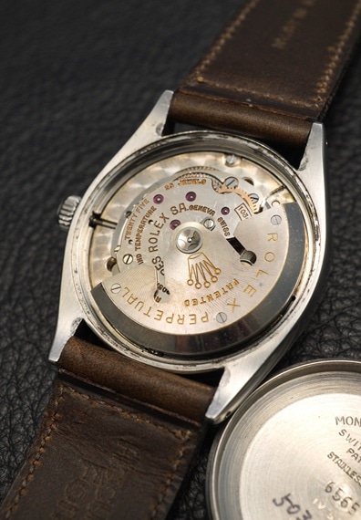 ケースは33㎜と後年モデルに比べると小ぶりで、オイスターケースならではの柔らかなフォルムとも相まって、腕に乗せた時の装着感は格別です。全体的に年代相応の小傷等は見受けられるものの、本来のケースシェイプは健在で着用には申し分の無いコンディションです。ムーブメントはバタフライローターを採用した、名機Cal.1030を搭載。オーバーホール前ながら、こちらも中々のコンディションです。市場でも比較的目にすることも多いオイスターパーペチュアルですが、今回の個体は随所に見られるヴィンテージロレックスならではの仕様や唯一無二の経年変化が魅力的です。他モデルとはひと味違う、Ref.6564。是非この機会にご検討ください。