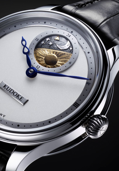 12時位置の太陽と月のモチーフが施された“スカイディスク”と呼ばれる24時間計が特徴的な同モデル。この作品でステファン・クドケは2019年にジュネーブ ウォッチ グランプリを受賞しました。