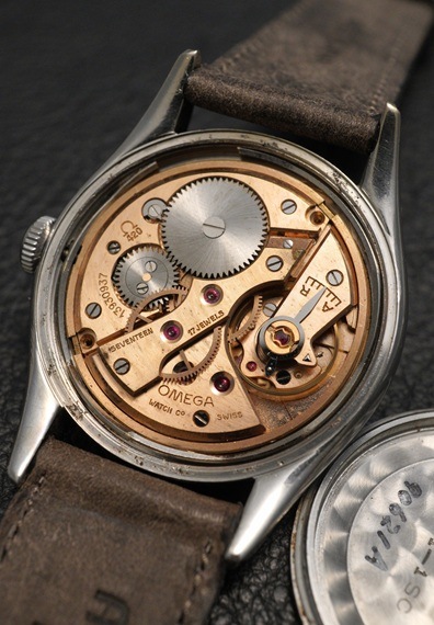 コンディションとしては若干の経年変化はあるもの、ヴィンテージウォッチらしい自然の風合いと言えるでしょう。特にケースは流麗ながらもシェイプの効いたデザインと、特徴的なラグデザインは健在です。ケース径は34㎜で手巻きモデルですので小ぶりにも思えがちですが、そのマッシブなスタイルに加えてスクリューバック仕様でしっかりと厚みのあるケースは、サイズ以上に迫力が感じられます。ムーブメントは30㎜キャリバーを小型化したCal.420を搭載。 赤銅色のメッキも美しく、こちらも良好なコンディションです。この年代ならではの捻りの効いたデザインは腕元をより華やかにしてくれるでしょう。高いデザイン性を感じられる、ヴィンテージオメガ Ref.2721。是非この機会にご検討ください。