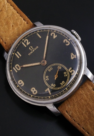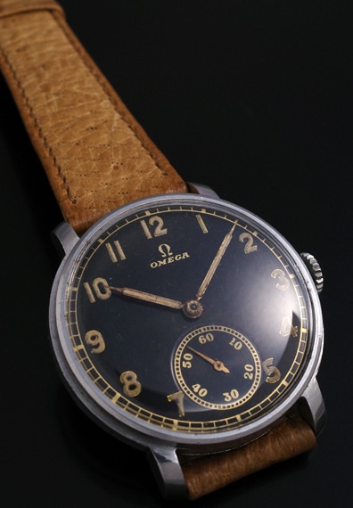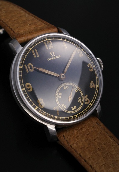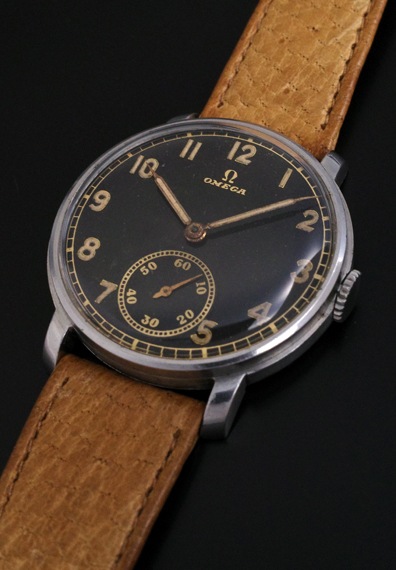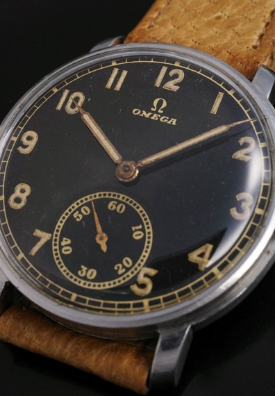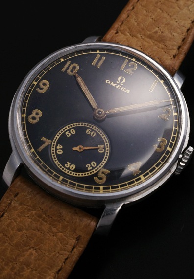 夜光インデックス&夜光針に30年代らしい斜体のオメガロゴが映えるクラシックなスタイルです。全体的に状態も良好で、ダメージ等もほどんとなく、ケースもしっかりとしています。