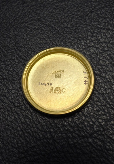 ケースは若干の仕上げが施されており、光沢の無いマットな質感となっています。また、僅かな小傷や金焼けが見受けられます。33㎜かつスクリューバック仕様は装着時のサイドからの立体的なシルエットも秀逸で、印象的なダイヤルデザインをより際立たせています。今回の個体には、ゼニスが発行するアーカイブスが付属します。モデルの特徴や製造年といった基本的な情報以外にも、Cal.2542PCの開発に至るまでの詳細や販売本数といった資料的にも価値のある情報が記載されています。独特な存在感を放つ、ゼニス「キャプテン・デラックス」。是非この機会にご検討ください。