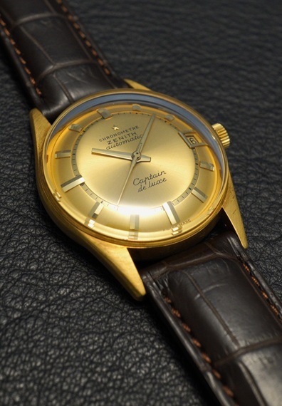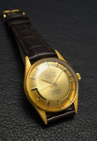 1968年製のゼニスの希少モデル「キャプテン・デラックス」がアーカイブス付属で入荷しました。18金無垢ケースが採用された当時の上位機種で、自社製クロノメータームーブメント「Cal.2542PC」を搭載している同モデル。