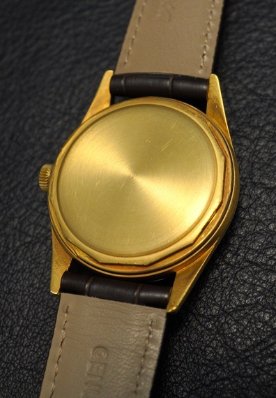 ボンベ状のダイヤルはサンバースト仕上げでワントーンのゴールドカラーでありながら、内周のミニッツマーカーによってメリハリの効いたデザインとなり、さながらツートンダイヤルのような佇まいです。多面カットされたインデックス等含めて、細部まで拘り尽くされた魅力的なディティールをしており、経年変化などの傷みのない非常に綺麗な顔立ちが目を惹きます。