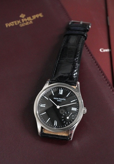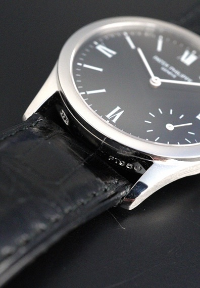 2000年を記念して130セット限定で展開された、Ref.5026 Calatrava Millennium / カラトラバミレニアム。上品なローマンインデックスに4時位置へとオフセットされたスモールセコンドが特徴的で、YG,RG,WG,Ptと4つのマテリアルでセットで発売されました。今回の個体は、美しいブラックダイヤルに希少なプラチナケースのモデルです。オフセットされたスモールセコンドや、白色によるペイントタイプのローマンインデックス&バーハンドの組み合わせは、懐中時計や希少モデルのオールドパテックを想起させるデザインで、それらが生み出す凝縮感と唯一無二のな存在感が秀逸な一本です。