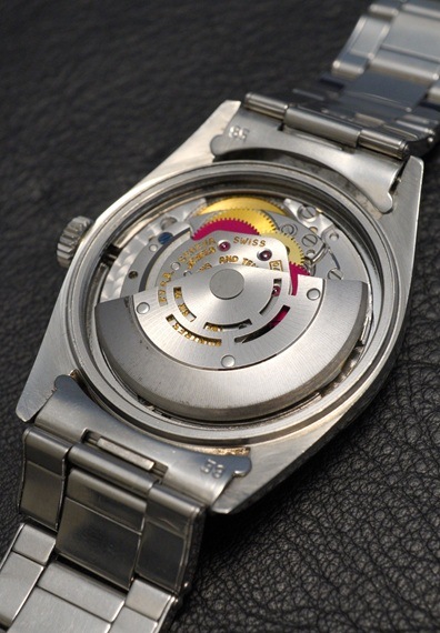 搭載するCal.1570もオーバーホール前の状態ですが、特筆すべきダメージはありません。また、ケースと同年の純正リベットブレスレットが付属します。(1969年/FF:58) ケースと同年というのは嬉しい点で、こちらも大きなガタつきや伸びは見受けられない良好なコンディションです。ヴィンテージロレックスの定番モデルとして名高いデイトジャストシリーズですが、スムースベゼルが特徴的なRef.1600は通常モデルとは異なる大人の雰囲気を感じさせてくれます。本来の希少性と付属品完備も魅力的なRef.1600 デイトジャスト。ぜひこの機会にご検討ください。