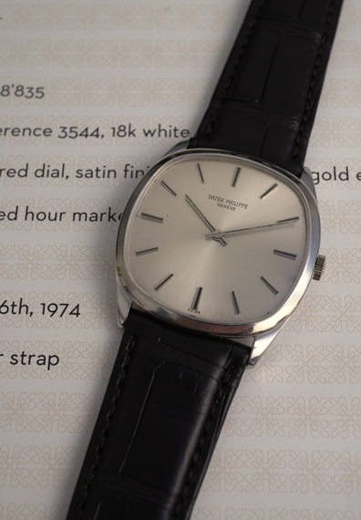 1974年のパテック・フィリップRef.3544が入荷しました。70年代の意匠を象徴するTVスクリーン型のケースは、独特のダイナミズムを放つ存在感のある佇まいです。 ケースサイズは33mmと小ぶりですが、実際はそれ以上のボリューム感を楽しめます。 また、ラグに絶妙な傾斜がつけられているため、フィット感もあり実用性の高さも魅力です。