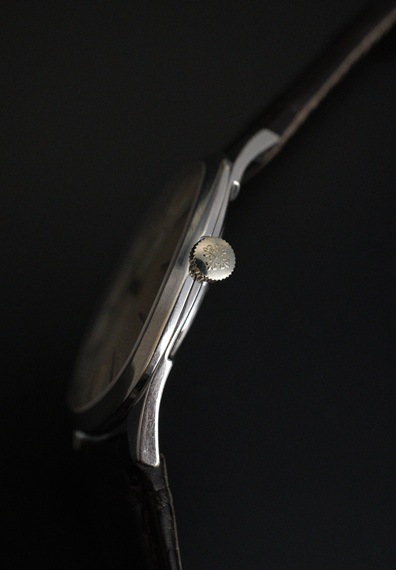 ダイアルは光の加減で柔らかな顔つきに変化するサンバースト仕上げ。シンプルなバーハンド・バーインデックスは飽きの来ないデザインで、シーン問わずお使いいただけるでしょう。針や外周にヴィンテージ特有のエイジングは見られますが、 雰囲気を損なう程ではございません。