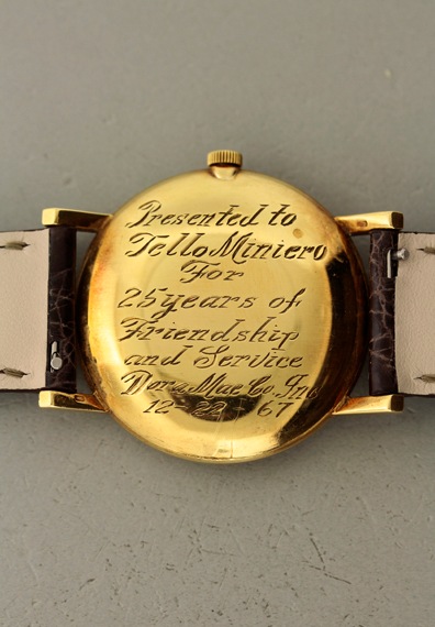 裏蓋にはびっしりとメッセージが刻まれていますが、各パーツともに際立った傷や汚れもなく、まずまずの状態かと思われます。
