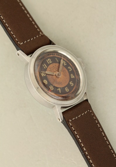 ドクサのこのタイプの手巻きモデルは手の込んだデザインが多いですが、なかなかここまでのテイストとエイジングのモデルはないのではないでしょうか。