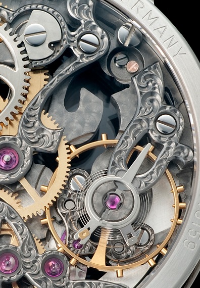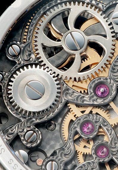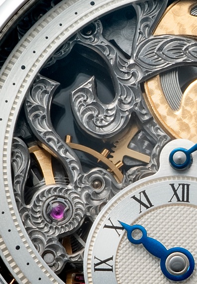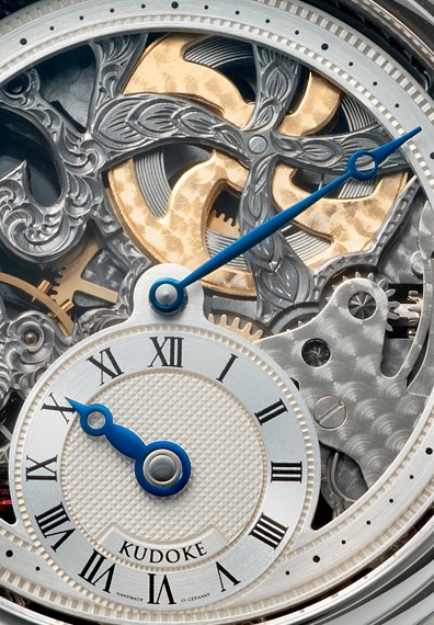 ギョーシェが施された6時位置のインダイヤル、そしてステファン・クドケの芸術的なエングレービングが加わり、他にはない独創的な存在感を放っています。