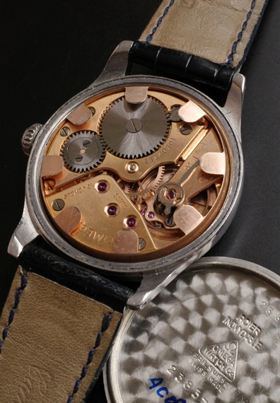 搭載するのは、ヴィンテージオメガを代表する名機Cal.30T2PC。こちらも銅色メッキの美しい、素晴らしい状態をキープしています。