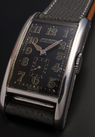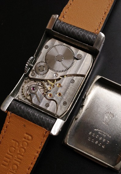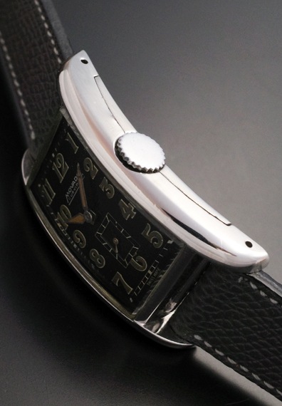 今回入荷したのは、主張の強いアラビアインデックスに特徴的な長短針の組み合わせが映える一本となります。その特異なケース構造のために、状態の良い個体を探すのが難しいと言われていますが、今回は稀少なブラックダイヤル。製造年を考慮すれば申し分ないコンディションで、ケースも若干の小傷は見られますが、優美なケースシルエットは健在です。