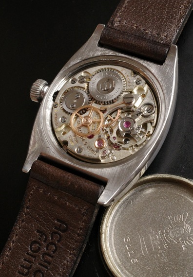 搭載するのは、ご存知Cal.10 1/2。通常の15石、17石仕様と異なり、18石の6ポジションアジャスト仕様で、プレートにもCHRONOMETER表記が入ったハイグレード仕様となっています。
