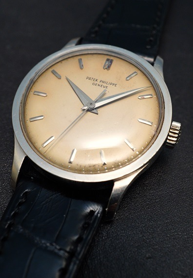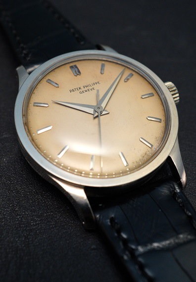 1961年製のパテック・フィリップ Ref.570が入荷しました。世界相場も軒並み上昇している人気のビックカラトラバ。今回は希少な18KWGケースモデルとなりますが、特筆すべきはその経年変化したダイヤルでしょう。元のシルバーダイヤルの面影はほとんど無く、ここまで均一にエイジングしたダイヤルは最早「美しさ」として見て取ることができます。