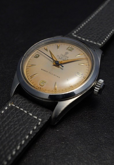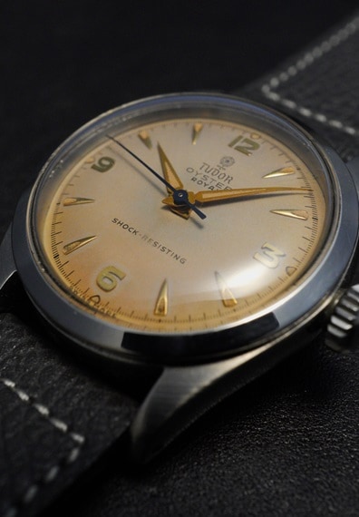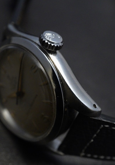 厚みを感じさせるケースシルエットもダイヤルの力強さを際立たせています。ムーブメントは手巻きCal.1182を搭載。赤銅メッキが施されており、ややメッキ剥がれがあるもも、目立つ劣化もありません。小ぶりながら存在感十分なダイヤルデザインと美しい経年変化が特徴的なチュードル、小バラ、オイスタープリンス。ヴィンテージロレックスとは一味違ったディテール、テイストが大変魅力的なモデルです。ぜひこの機会にご検討ください。