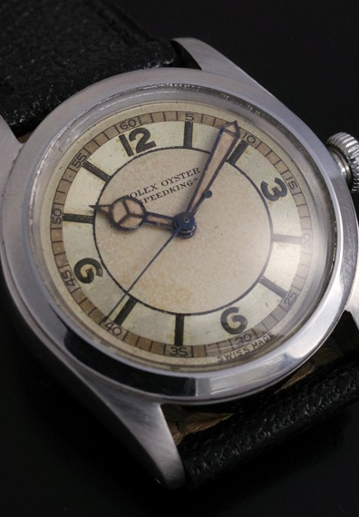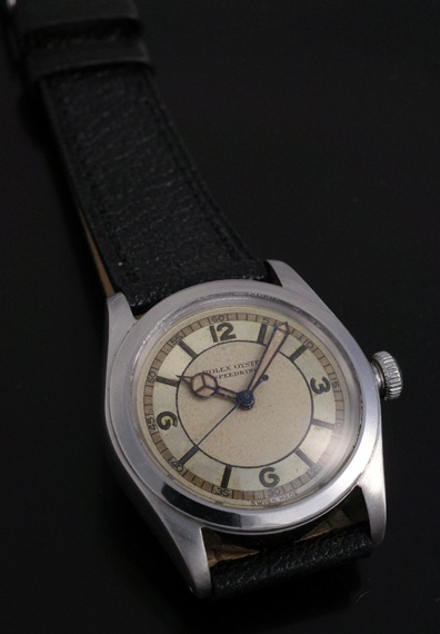 希少かつ人気の3バカセクターダイヤルとなります。外周のミニッツマーカーが全体を引き締めるツートン仕様にもなっており、ヴィンテージロレックスらしいベンツ針と、ファントムリューズも加わって、通好みの素晴らしいテイストに仕上げられています。