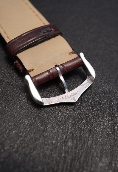 また、ケース素材も18Kホワイトゴールドゆえに高級感は十分に感じていただけながら、着用シーンを選ばずどのような場面でも装いに馴染んでくれます。大きな経年変化や過度なポリッシュされた形跡も無く、着用するには申し分のない一本と言えるでしょう。純正の18Kホワイトゴールドの尾錠付きという点も嬉しいポイントです。