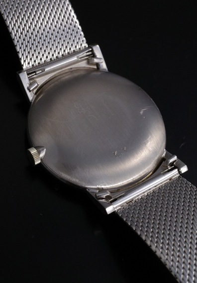 厚みを抑えたスリムな18KWGケースと、エッジの効いたシャープなラグ、そして細やかな刻みの入ったベゼルが特徴的な同モデル。