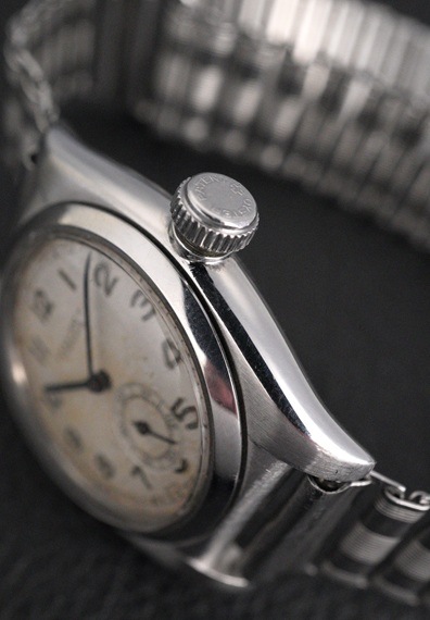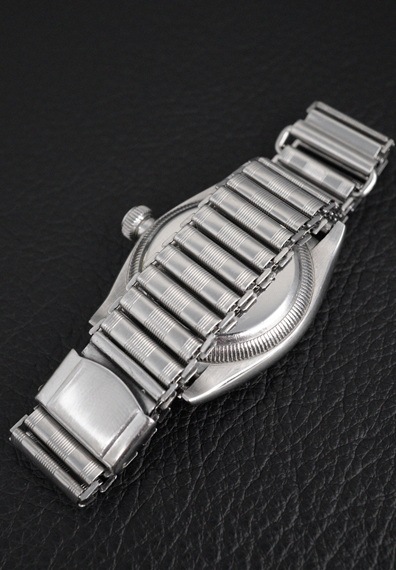 1930年代前半から50年代後半まで製造されたバブルバックですが、今回の個体は大変貴重な初期仕様のモデル。スリーピースケースにビッグリューズが付き、フラットに近い形状のローターが特徴的で、市場では中々流通しないレアな仕様です。また、ダイヤルも王冠マーク以前のロゴにエンボスの全アラビアインデックス、スモールセコンドのクラシカルな組み合わせです。