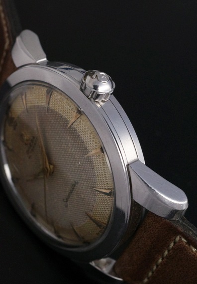 ダイヤルは全体的にシャンパンゴールドカラーにエイジングしており、デザインの良さに加えヴィンテージらしい魅力的な表情を見せてくれます。