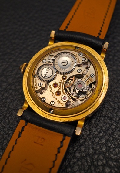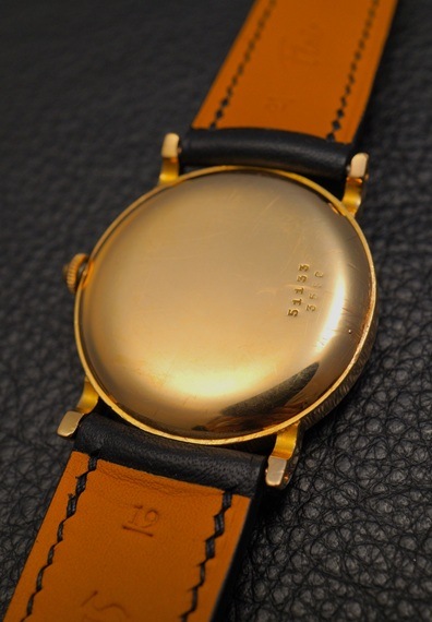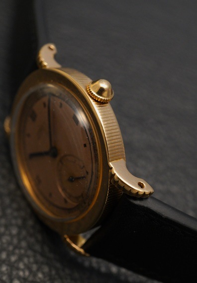 雰囲気の良いピンクカラーのダイヤルと相性の良い18KPGケースに、ユニークなケースデザインが特徴的な一本です。飛びローマンインデックスにミニッツマーカー、ハチマキデザインの入る雰囲気の良いダイヤルは、所々に小傷や経年変化が見られますが、着用時にはさほど目立たず、製造年代を考慮すれば、十分許容範囲と言えるのではないでしょうか。