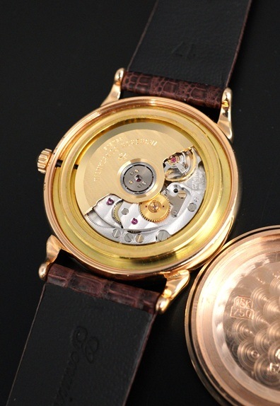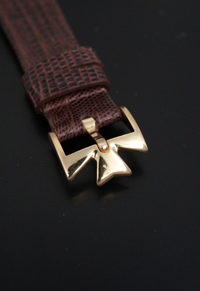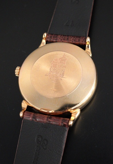 ケースも腕に載せた時に肌合い良い18KPGで、90年代ならではの32㎜の程よいサイズ感です。「猫足」とも呼ばれるティアドロップ型のラグと相性も良く、全体のクラシカルな佇まいをより一層引き立てています。ムーブメントは小型自動巻きムーブメントであるCall.1190を搭載。ローターは一部では無く、全てに21Kゴールドを使用している高級機仕様です。こちらはオーバーホールが完了しており、購入後はその場でお持ち帰りいただけます。