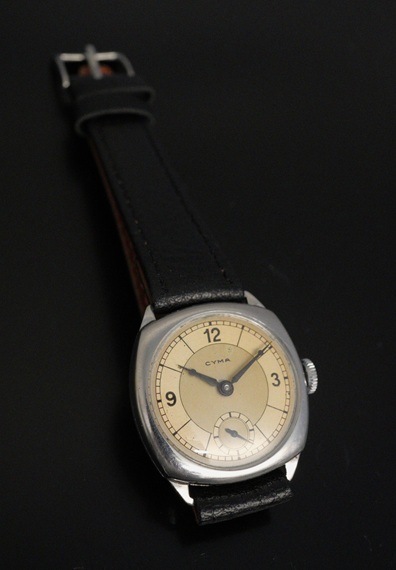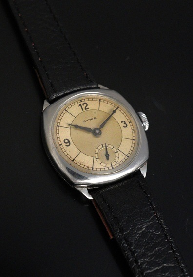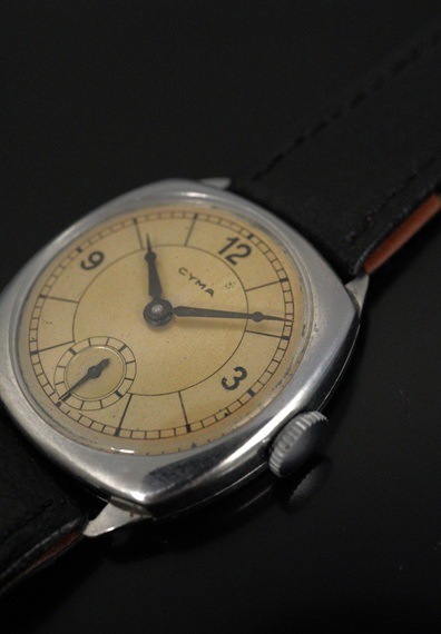 1940年代のシーマが入荷しました。幾何学的なラインが際立つ2トーンのセクターダイアルです。
